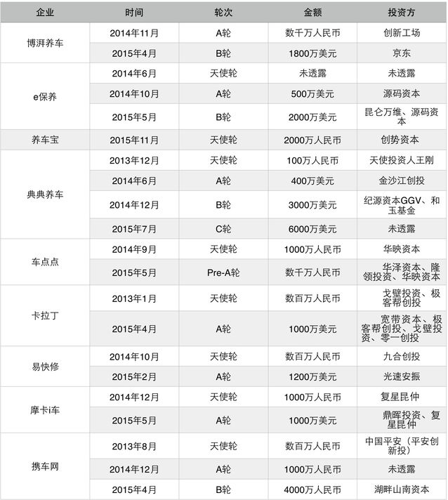 2015年上半年,養護O2O作為轎車后商場O2O的一個細分范疇也逐步升溫,包含博湃養車、典典養車、卡拉丁等在內的多家公司都取得了新一輪融資。